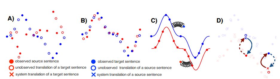 摘要:Machine translation systems achieve near human-level performance on some languages, yet their effectiveness strongly relies on the availability of large amounts of bitexts, which hinders their applicability to the majority of language pairs. This work investigates how to learn to translate when having access to only large monolingual corpora in each language. We propose two model variants, a neural and a phrase-based model. Both versions leverage automatic generation of parallel data by backtranslating with a backward model operating in the other direction, and the denoising effect of a language model trained on the target side. These models are significantly better than methods from the literature, while being simpler and having fewer hyper-parameters. On the widely used WMT14 English-French and WMT16 German-English benchmarks, our models respectively obtain 27.1 and 23.6 BLEU points without using a single parallel sentence, outperforming the state of the art by more than 11 BLEU points.