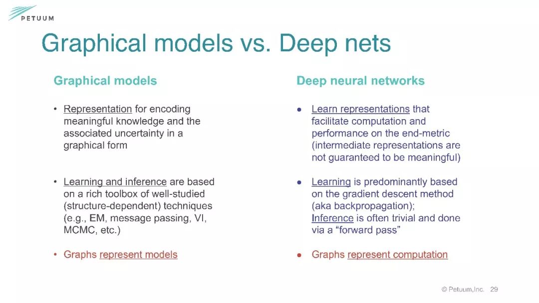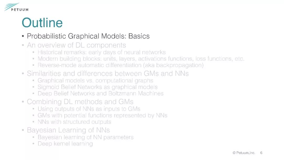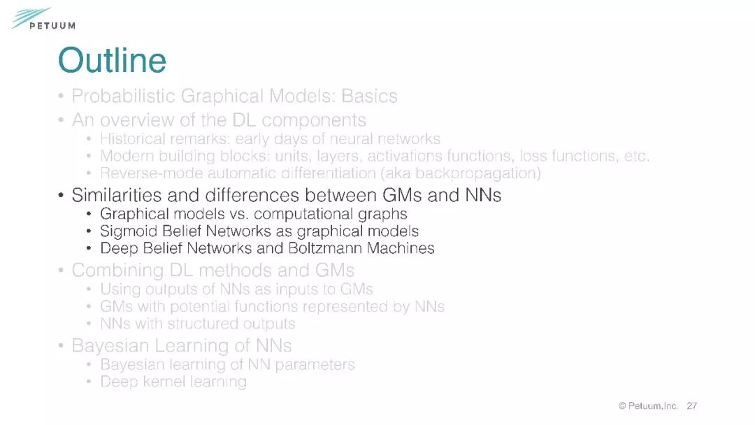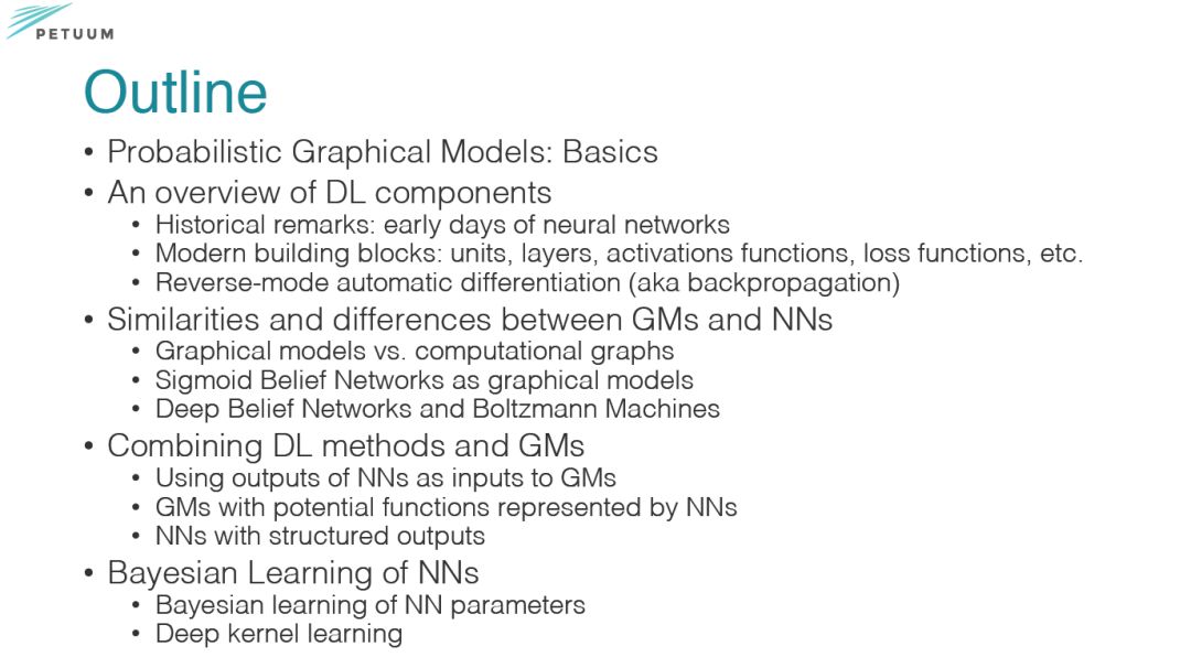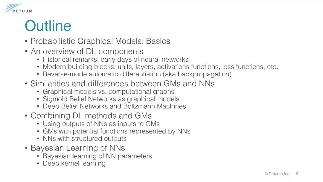 第一部分着重讲述关于图模型、深度学习的基础、相似性区别和联合建模。结论部分点出图模型注重推理而深度学习注重学习表示。