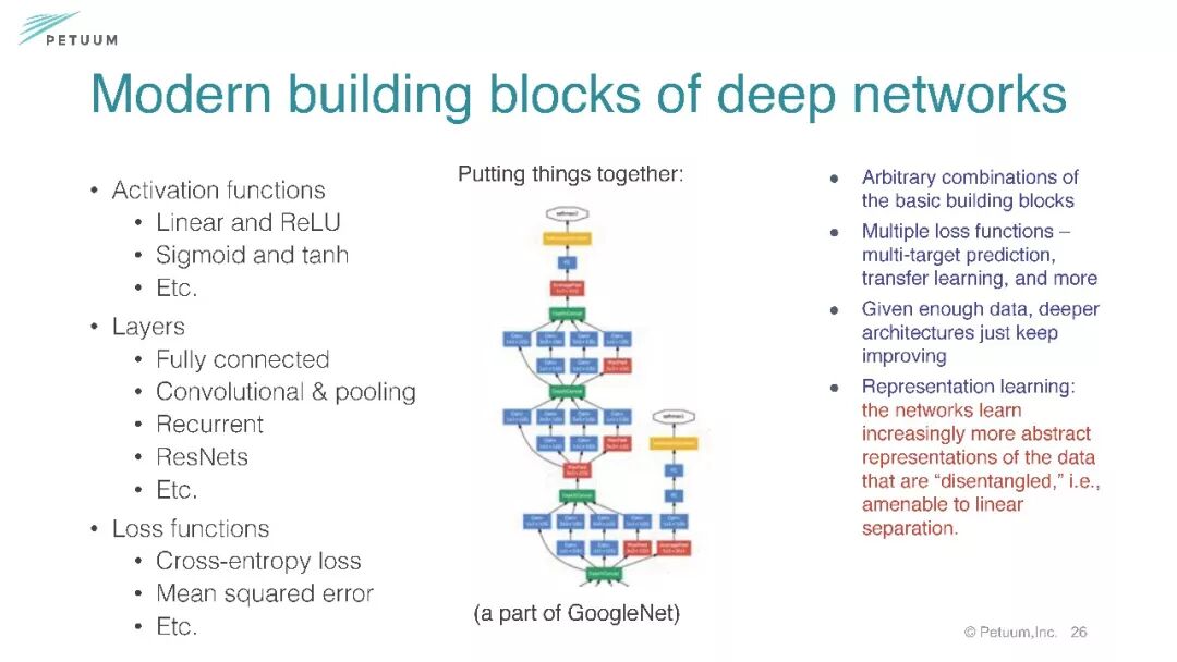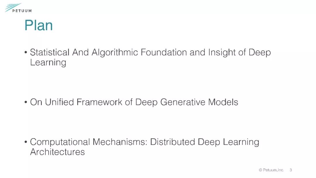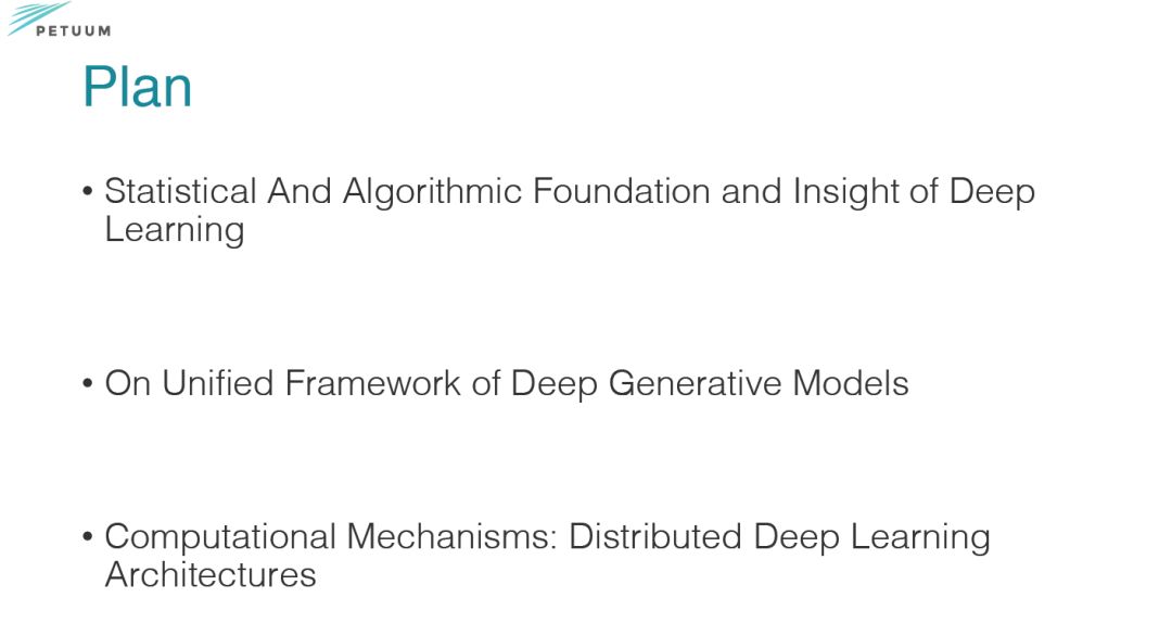 【导读】如何将深度学习等AI算法应用到实际场景里,不是一件容易的事情。 2016年,卡耐基梅隆大学计算机科学院的终身教授邢波(Eric Xing)在匹兹堡创办了Petuum,他致力于创建一个平台,通过自定义的虚拟化和操作系统构建机器学习和深度学习应用程序,为企业提供所需的机器学习工具。结合Petuum, 邢波教授在7月份深度学习夏令营分享了关于从统计机器学习视角理解深度学习的算法、理论与可扩展计算(A Statistical Machine Learning Perspective of Deep Learning: Algorithm, Theory, Scalable Computing), 这一份Slides 286页, 非常全面, 是一份结合学术研究和实际应用的详实参照学习材料,不可不看.