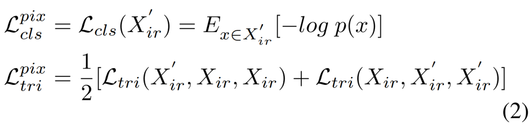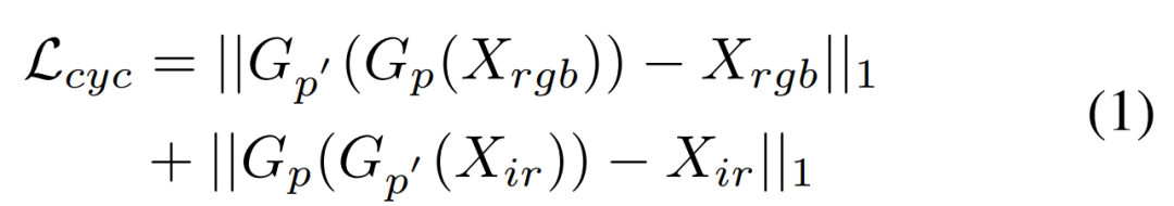 像素对齐模块(Pixel Alignment Module)。参考CycleGAN方法,我们的像素对齐模块包含两套生成器和判别器。这两套生成器分别用于RGB2IR以及IR2RGB。对应的,两套判别器分别用于判别合成的IR图像和合成的RGB图像。请注意,虽然在训练过程中我们用到了两套生成器和判别器,但是在推理过程中,我们只用了RGB2IR的生成器,去进行像素对齐操作。
