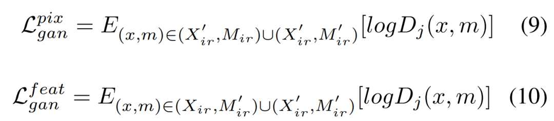 对应的,像素对齐模块和特征对齐模块的对抗损失函数分别入公式9和公式10所示。