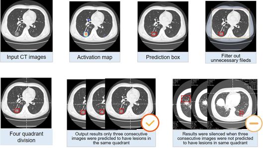 深度学习技术在提取放射学数据中的微小特征方面表现出良好的性能,有望缓解这一问题。近期[11]、Ardila D等实现了低剂量胸部CT端到端肺癌筛查,AUC为94.4%。[27] Chae KJ等人成功地利用卷积神经网络对CT扫描图像上的小结节(≤2cm)进行了分类。然而,很少有研究被用于检测病毒性肺炎。[11,27,28]在以往的工作中,我们小组成功招募了在微小病变检测方面的深度学习,以及在胃肠道内镜方面对医生的实时协助。[12-16]在这里,我们登记了CT图像中COVID-19肺炎的识别技术。回顾性和前瞻性患者的结果表明,该模型与放射专家水平相当,在减少诊断时间方面有很大潜力。(图6)