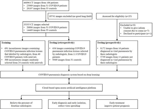 由于COVID-19的爆发,成千上万的患者在武汉等城市指定的发热门诊医院排队等待CT检查。截至2月14日,湖北省共有5534例疑似病例,38107例确诊病例正在医院接受治疗,77323例正在接受医学观察。据《中国卫生统计年鉴》(2018年)显示,湖北省目前有不到4500名放射科医生,其中大部分需要接受CT检查。同时,由于COVID-19感染早期肺部感染灶小,诊断时通常需要较薄的层扫描(2.5mm、1.25mm甚至0.625mm),而不是常规的CT扫描(5mm),这样更费时。这些都使得放射科医生超负荷工作,延误了对患者的诊断和隔离,影响了患者的治疗和预后,最终影响了COVID-19疫情的控制。