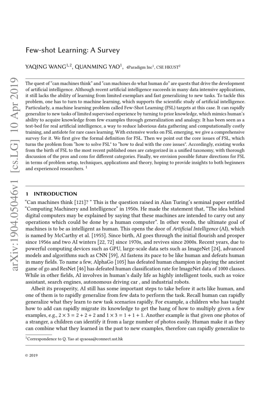 【导读】现有的机器学习方法在很多场景下需要依赖大量的训练样本。但机器学习方法是否可以模仿人类,基于先验知识等,只基于少量的样本就可以进行学习。本文介绍41页小样本学习综述《Few-shot Learning: A Survey》,包含146篇参考文献,来自第四范式和香港科技大学习的研究学者。