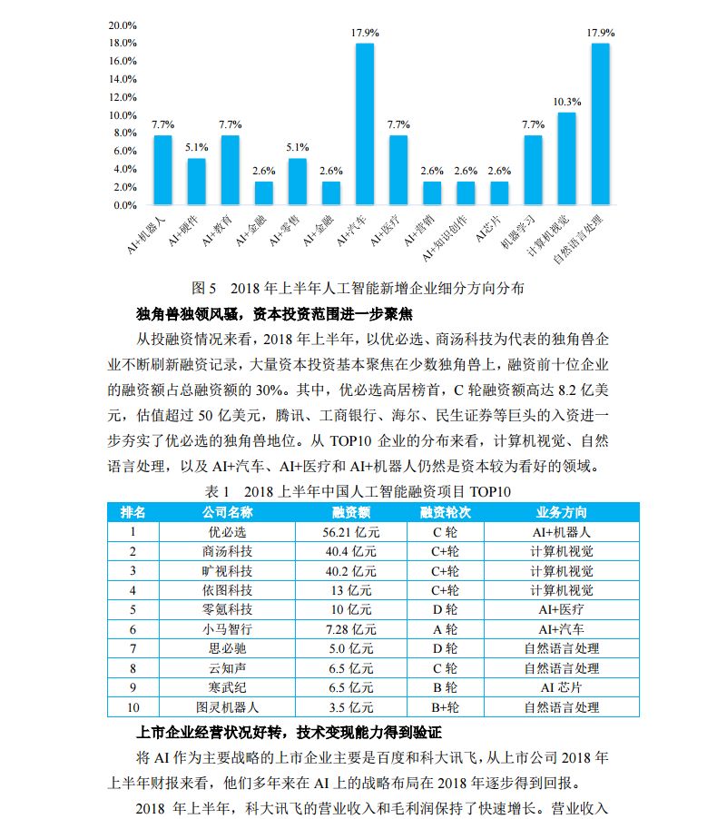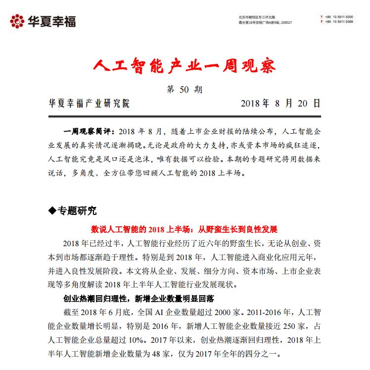 随着上市企业财报的陆续公布,人工智能企业发展的真实情况逐渐揭晓。无论是政府的大力支持,亦或资本市场的疯狂追逐,人工智能究竟是风口还是泡沫,唯有数据可以检验。本期的专题研究将用数据来说话,多角度、全方位带您回顾人工智能的 2018 上半场。