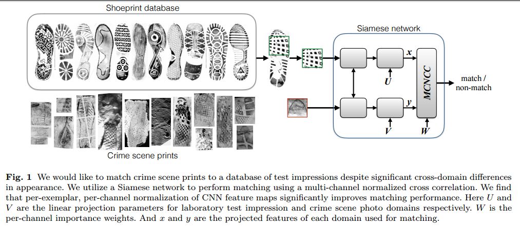 摘要:We investigate the problem of automatically determining what type of shoe left an impression found at a crime scene. This recognition problem is made difficult by the variability in types of crime scene evidence (ranging from traces of dust or oil on hard surfaces to impressions made in soil) and the lack of comprehensive databases of shoe outsole tread patterns. We find that mid-level features extracted by pre-trained convolutional neural nets are surprisingly effective descriptors for this specialized domains. However, the choice of similarity measure for matching exemplars to a query image is essential to good performance. For matching multi-channel deep features, we propose the use of multi-channel normalized cross-correlation and analyze its effectiveness. Our proposed metric significantly improves performance in matching crime scene shoeprints to laboratory test impressions. We also show its effectiveness in other cross-domain image retrieval problems: matching facade images to segmentation labels and aerial photos to map images. Finally, we introduce a discriminatively trained variant and fine-tune our system through our proposed metric, obtaining state-of-the-art performance.