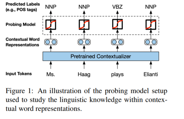 Nelson Liu等人发表了一篇论文,讨论了预先训练的语境设定者(如BERT和ELMo)获取的语言知识的类型。