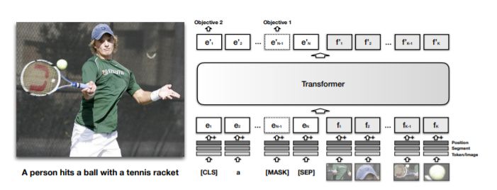 VisualBERT是一个简单而健壮的框架,用于建模视觉和语言任务,包括VQA和Flickr30K等。这种方法利用了一组Transformer层,并结合了self-attention来对齐文本中的元素和图像中的区域。