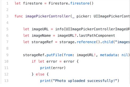 首先,在我的Swift客户端中,我添加了一个按钮,供用户访问设备照片库。用户选择照片后,会自动将图像上载到云端存储: