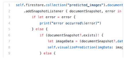 我在Swift中编写了一个iOS客户端来对我的模型进行预测请求(因为为什么不用其他语言编写TSwift检测器?)Swift客户端将图像上传到云存储,这会触发Firebase,在Node.js中发出预测请求,并将生成的预测图像和数据保存到云存储和Firestore中。