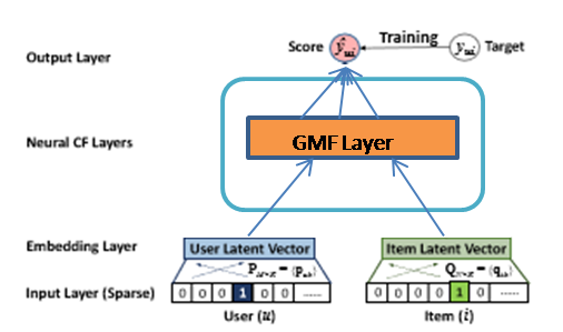 GMF(Generalized Matrix Factorization)为广义矩阵分解,是矩阵分解(MF)的推广。