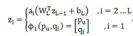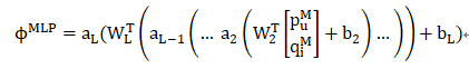 NCF框架下的MLP每一层输出z_i为: