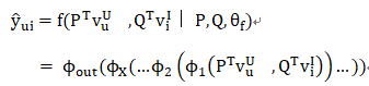 • v^U_u、v^I_i分别表示输入层输出的用来描述用户u、项目i的特征向量