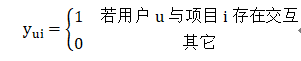 用户的隐式反馈得到的用户-项目交互矩阵 Y定义为: