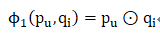 定义第一层NCF层的映射函数为: