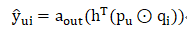 GMF部分的输出表示为: