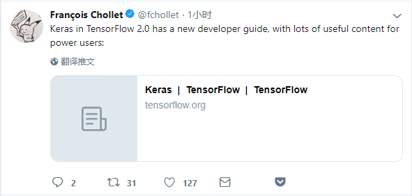 Keras作者François Chollet在Twitter转发了TensorFlow官方最新tf.keras指南,本文大概介绍一下该指南中比较重要的内容。