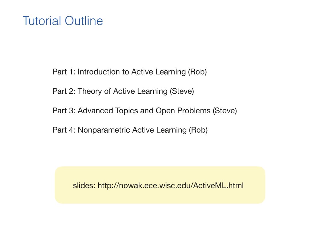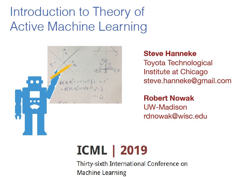 【导读】主动学习,是今年 ICML上比较热门的方向,这几年,研究者越来越关注小样本,无标记的数据如何快速标记,或者样本缺失的问题,而主动学习可以在大量无标记数据中选择最佳的数据进行标记,扩展标签的数据。在昨天的ICML2019 Tutorial环节,来自芝加哥丰田技术研究所(TTIC)的Robert Nowak 教授和威斯康辛大学麦迪逊分校(University of Wisconsin-Madison) 的Steve Hanneke跟大家交流了《主动学习:理论到实战》的当前进展。