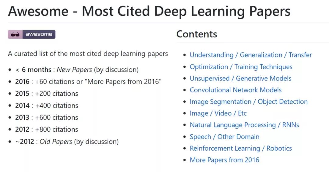 这是来自于terryum整理的一份自2012年起被引用最多数量的深度学习论文列表