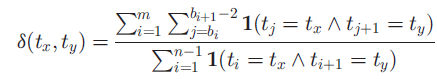 这里的1表示的是身份指标,δ(tx,ty)表示的是在所有给定的(tx,ty)对中未匹配的比率。