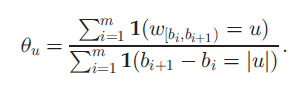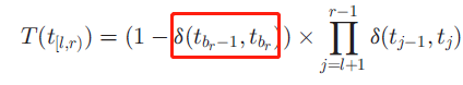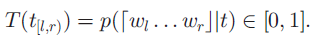 标签子序列用t_[l,r)表示,其标签子序列的质量分数被定为:对应词序列是完整语义单元的条件概率: