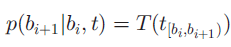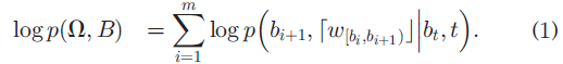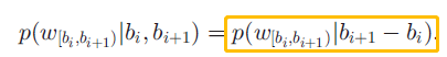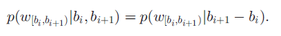 2)给定两端bi和bi+1,根据在长度为两端点的差值的所有分割段上的多项式分布生成单词序列w