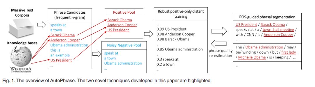 本文提出新的自动短语挖掘框架AutoPhrase:独立于领域,只需要很少的人力或语言分析;