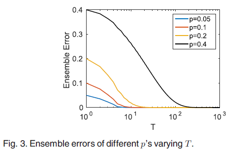 从上图中可以看出随着T的增长,整体误差接近于0。实际操作中,由于模型偏差带来的附加误差,T需要设置的大一些。