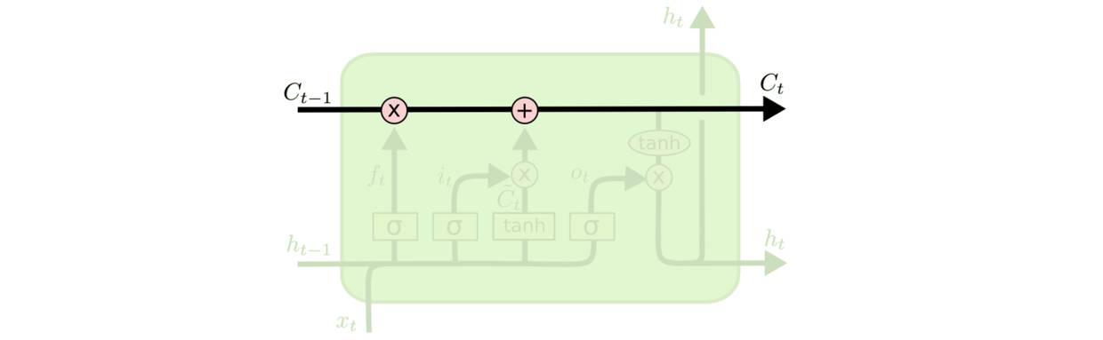 cell状态类似于输送带。它直接在整个链上运行,只有一些少量的线性相互作用。信息在上面流传保持不变会很容易。