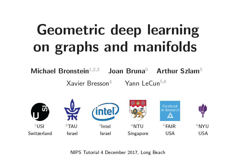 【导读】美国时间 12 月 4 日,第 31 届神经信息处理系统大会(Neural Information Processing Systems,NIPS)在美国加州长滩的会展中心正式开幕!NIPS是人工智能和机器学习领域的顶会,来自世界范围内优秀的科学家、研究人员和从业者都将汇聚一堂,相互切磋工作,将在未来的五天里共同讨论和分享人工智能的前沿想法和未来发展。每年 NIPS 的会议上,都会有非常重量级的 tutorial 和工作发表。今天,专知内容组整理Michael Bronstein教授讲解的Tutorial《Geometric Deep Learning on Graphs and Manifolds》(图和流形的几何深度学习)分享给大家。