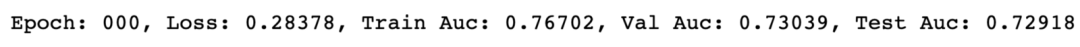 我训练了1个epoch的模型,并测量训练,验证和测试AUC分数: