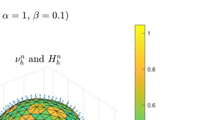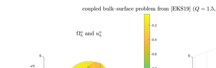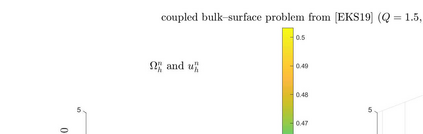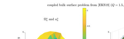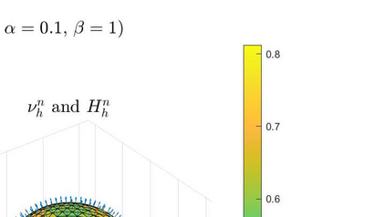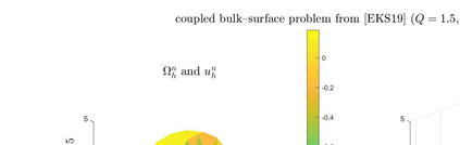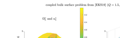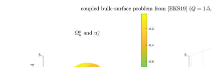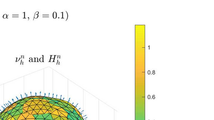 This paper studies an evolving bulk--surface finite element method for a model of tissue growth, which is a modification of the model of Eyles, King and Styles (2019). The model couples a Poisson equation on the domain with a forced mean curvature flow of the free boundary, with nontrivial bulk--surface coupling in both the velocity law of the evolving surface and the boundary condition of the Poisson equation. The numerical method discretizes evolution equations for the mean curvature and the outer normal and it uses a harmonic extension of the surface velocity into the bulk. The discretization admits a convergence analysis in the case of continuous finite elements of polynomial degree at least two. The stability of the discretized bulk--surface coupling is a major concern. The error analysis combines stability estimates and consistency estimates to yield optimal-order $H^1$-norm error bounds for the computed tissue pressure and for the surface position, velocity, normal vector and mean curvature. Numerical experiments illustrate and complement the theoretical results.