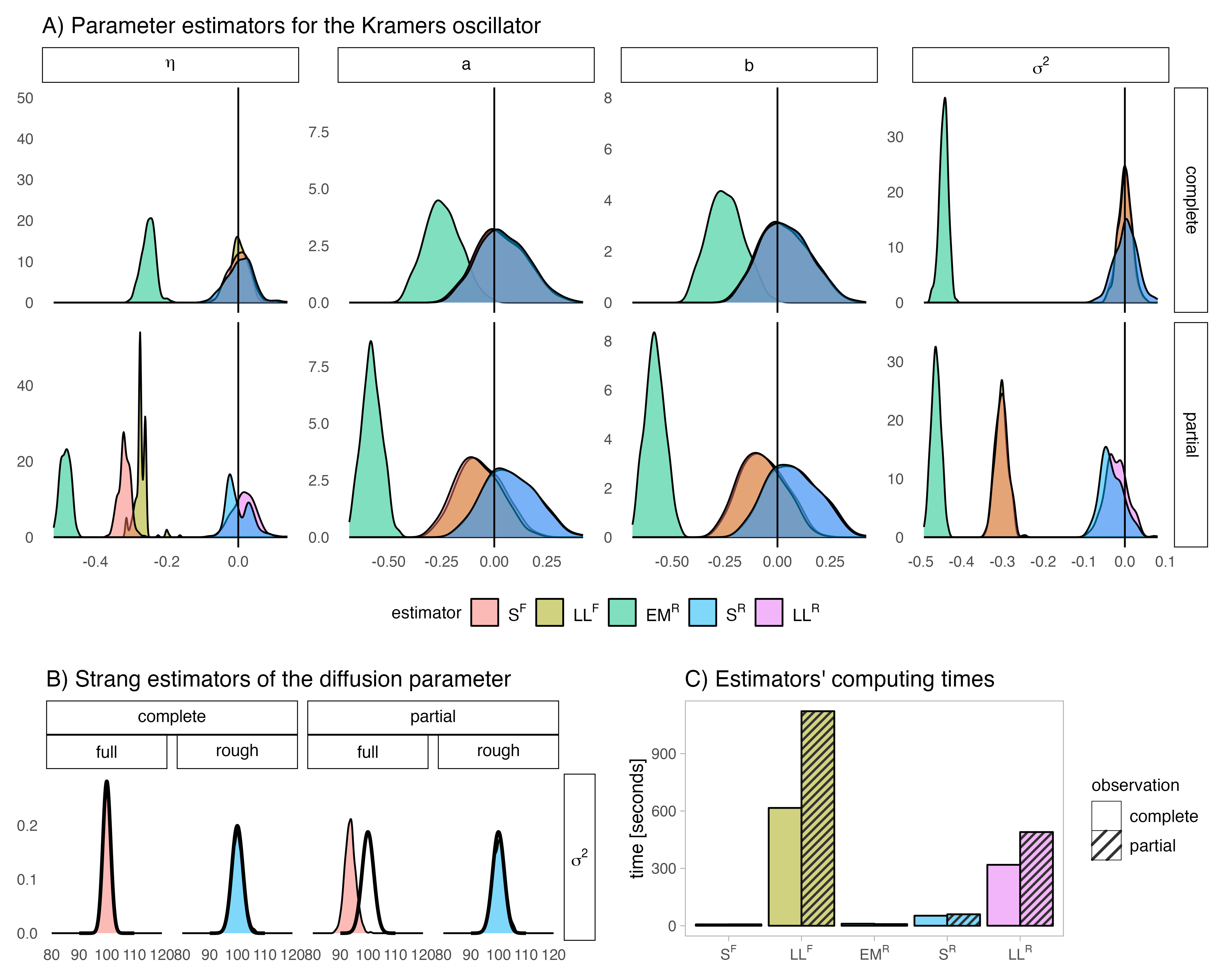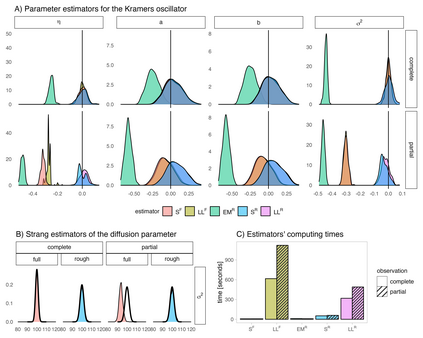 We address parameter estimation in second-order stochastic differential equations (SDEs), prevalent in physics, biology, and ecology. Second-order SDE is converted to a first-order system by introducing an auxiliary velocity variable raising two main challenges. First, the system is hypoelliptic since the noise affects only the velocity, making the Euler-Maruyama estimator ill-conditioned. To overcome that, we propose an estimator based on the Strang splitting scheme. Second, since the velocity is rarely observed we adjust the estimator for partial observations. We present four estimators for complete and partial observations, using full likelihood or only velocity marginal likelihood. These estimators are intuitive, easy to implement, and computationally fast, and we prove their consistency and asymptotic normality. Our analysis demonstrates that using full likelihood with complete observations reduces the asymptotic variance of the diffusion estimator. With partial observations, the asymptotic variance increases due to information loss but remains unaffected by the likelihood choice. However, a numerical study on the Kramers oscillator reveals that using marginal likelihood for partial observations yields less biased estimators. We apply our approach to paleoclimate data from the Greenland ice core and fit it to the Kramers oscillator model, capturing transitions between metastable states reflecting observed climatic conditions during glacial eras.