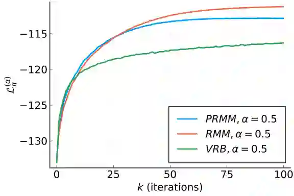 翻译:我们研究了在指数式家庭上将常规R\'enyi差异最小化的变推论问题,并提出了一种宽松的瞬间匹配算法,其中包括一个近似准的步子。利用布雷格曼差异和库尔贝克-利伯尔差异之间的信息几何联系,这种算法被证明等同于布雷格曼准偏差梯度算法。这种新颖的视角使我们能够利用我们近似模型的几何方法,同时使用随机黑盒更新。我们用这个观点来证明强烈的趋同保证,包括目标的单调下降、与固定点或最小化点的趋同和趋同率。这些新的理论洞见导致一种多功能、强力和竞争性的方法,如数字实验所说明的那样。