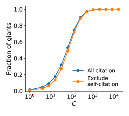 翻译:牛顿数百年来的智慧是站在巨人的肩膀上,而科学进步的份量却相对较少。我们发现一个至关重要的、但却未得到充分探讨的问题:在一项发现所引用的所有先前的作品中,一个是其巨型的发现,一个是其巨型的?在这里,我们开发了一种新颖的、无纪律的独立的方法来识别巨型的单纸,让我们能够系统地检查巨型科学的作用和特征。我们发现,跨学科的论文中,大约95%的论文站在巨型的肩膀上,而科学进步的重心却在相对较少的肩膀上。定义一个巨型指数的新尺度,我们发现,具有高引用率的论文更有可能成为巨型的巨型,对于具有相同引用的论文来说,其巨型指数强烈地预测了纸的未来影响和得奖概率的概率。巨型人物往往来自小型和大型团队,具有高度的干扰性或高度发展性。那些没有巨型但后来又成为了巨型的本土运行的论文往往成为对科学具有高度破坏性的本土论文。鉴于以引力为基础的措施的极端重要性,因此巨型概念在评估科学影响之外。