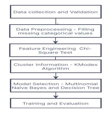 The identification of Prakriti types for the human body is a long-lost medical practice in finding the harmony between the nature of human beings and their behaviour. There are 3 fundamental Prakriti types of individuals. A person can belong to any Dosha. In the existing models, researchers have made use of SVM, KNN, PCA, Decision Tree, and various other algorithms. The output of these algorithms was quite decent, but it can be enhanced with the help of Multinomial Naive Bayes and K-modes clustering. Most of the researchers have confined themselves to 3 basic classes. This might not be accurate in the real-world scenario, where overlapping might occur. Considering these, we have classified the Doshas into 7 categories, which includes overlapping of Doshas. These are namely, VATT-Dosha, PITT-Dosha, KAPH-Dosha, VATT-PITT-Dosha, PITT-KAPH-Dosha, KAPH-VATT-Dosha, and VATT-PITT-KAPH-Dosha. The data used contains a balanced set of all individual entries on which preprocessing steps of machine learning have been performed. Chi-Square test for handling categorical data is being used for feature selection. For model fitting, the method used in this approach is K-modes clustering. The empirical results demonstrate a better result while using the MNB classifier. All key findings of this work have achieved 0.90 accuracy, 0.81 precision, 0.91 F-score, and 0.90 recall. The discussion suggests a provident analysis of the seven clusters and predicts their occurrence. The results have been consolidated to improve the Ayurvedic advancements with machine learning.