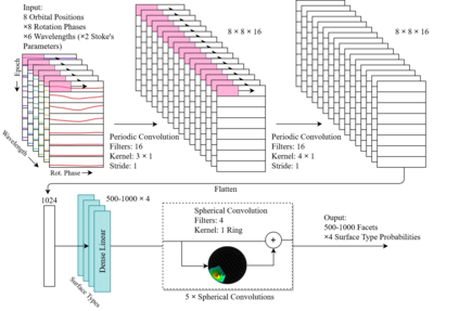 翻译:在近未来,专用望远镜用反光来观测类似于地球的远行星。由于距离太远,每个远板将是一个单一像素,但是其光谱通量的时间变异将保持关于地球表面和大气的信息。我们测试模拟的单像素通量和对极化观测中的地球旋转轴、表面和云图。我们调查一种假设,即行星在反射时反映兰伯特在回收中反映其实际反射的双向反射,并在检索中包括两极对等。由于距离太远,每个远板网将是一个单一像素通量和对极分数。我们模拟行星的轨道上的观测将是一个单一像素的像素,而行星的轨道上将出现两极分化和双向反射。我们测试行星轨道上的观测结果,包括植被、沙漠、海洋、海洋、水云云层和雷利的6个光谱波波段从400到800海里散布。覆盖模型行星的表型和云层模式应该以概率分布为基础。我们的网络在进行模拟对数百万个行星的轨道上进行观测时,经过模拟地心变的观察,在检索的轨道上将精确的轨道上的轨道上将观察结果和精确的轨道上反映着一个轨道的轨道的轨道的轨道,以正值的轨道的轨道的轨道,以正值为正值的正值反映。