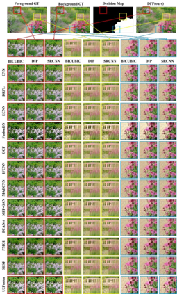 翻译:本文将多重点图像聚合(MFIF)和盲人超级解析(SR)问题统一为多重点图像超级解析(MFISRF)任务,并提议一个名为深融合(DFP)的新颖、统一的无数据-无监管框架,用于应对MFISRF任务。DFP由SKIPnet网络、双REblur焦点测量策略、决定嵌入模块和损失功能组成。特别是,DFP只能从两个低分辨率输入处获得MFISRF,而无需任何程度的数据集;SKIPnet通过前深层图像进行不受监督的学习是一个端对端生成的网络,作为DFP的引擎;双比布尔用于在没有学习但基于估计PSFFF和Gaussian内核演算法的情况下确定主要决策图;决定嵌入模块通过学习优化决策图;由内容损失、联合梯度损失和梯度限损失组成的DFISRFFF结果将获得高质量的结果。 实验证明,我们提议的DFP方法,甚至超越了DFFS/GFMFS的通用方法。