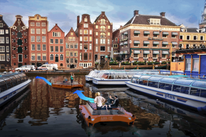 In unstructured urban canals, regulation-aware interactions with other vessels are essential for collision avoidance and social compliance. In this paper, we propose a regulations aware motion planning framework for Autonomous Surface Vessels (ASVs) that accounts for dynamic and static obstacles. Our method builds upon local model predictive contouring control (LMPCC) to generate motion plans satisfying kino-dynamic and collision constraints in real-time while including regulation awareness. To incorporate regulations in the planning stage, we propose a cost function encouraging compliance with rules describing interactions with other vessels similar to COLlision avoidance REGulations at sea (COLREGs). These regulations are essential to make an ASV behave in a predictable and socially compliant manner with regard to other vessels. We compare the framework against baseline methods and show more effective regulation-compliance avoidance of moving obstacles with our motion planner. Additionally, we present experimental results in an outdoor environment