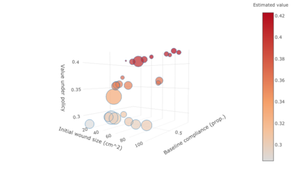 翻译:精密医学是产生改善保健和保健的证据的很有希望的框架,然而,在现实世界临床环境中证据产生和实施的统计精密医学战略数量不断增加,与弥补这一差距的战略之间仍然存在着差距,这很可能取决于具体情况。在本文件中,我们考虑了部分遵守外围动脉疾病患者的伤口管理的具体背景。通过使用高斯进程替代价值功能,我们超越了共同的精密医学任务,即学习一种最佳的动态治疗制度,以描述各种动态治疗制度的特点,以及如何将这些结果转化为临床环境。