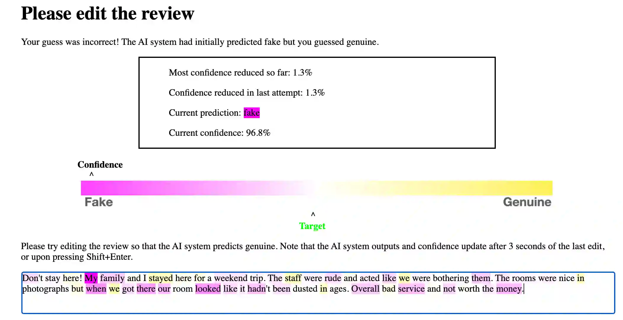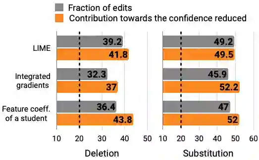 翻译:在对机器学习模型的“解释”预测中,研究人员提出了数百种技术,将预测归结为被认为重要的特征;虽然这些属性往往声称具有提高模型人类“理解”的潜力,但令人惊讶的是,很少有工作明确评价实现这一愿望的进展;在本文件中,我们开展了一项众包研究,参与者与为区分真实和假酒店审查而受过训练的欺骗检测模型相互作用;他们面临的挑战是模拟新审查模型,并编辑审查,目的是降低最初预测的等级的概率;成功的操纵将引出一个对抗性的例子;在培训(但不是测试)阶段,强调投入的跨度以传达显著的特征;通过我们的评估,我们观察到,对于线性词包模型,在培训期间能够使用特征系数的参与者,与不规划控制相比,在测试阶段能够更大程度降低模型信任度;对于基于BERT的分类员,流行的地方解释不会提高他们降低模型对模型信任度的能力;在模型(而不是测试)阶段,我们观察到,在经过培训的BERBRAD模型中,能够有效地解释。