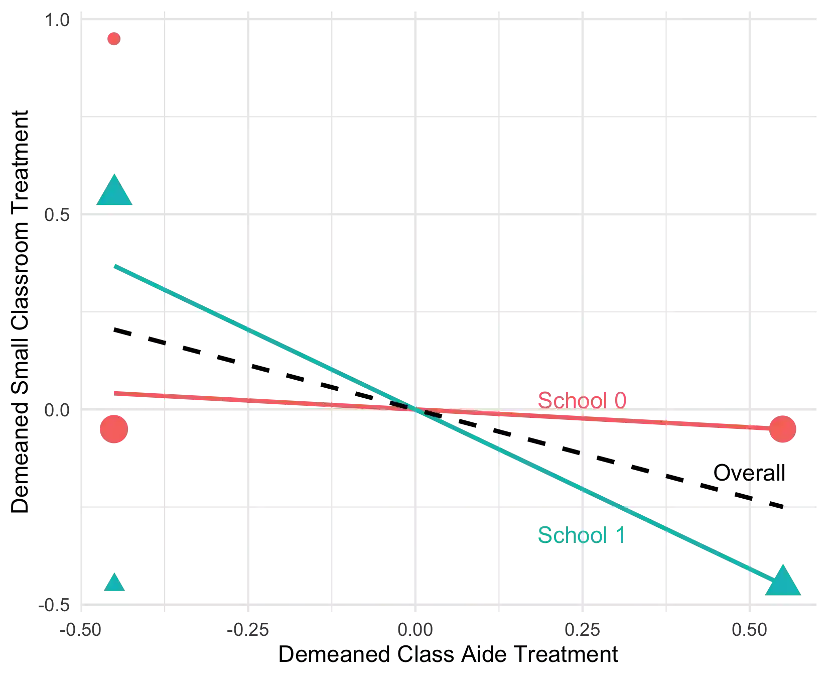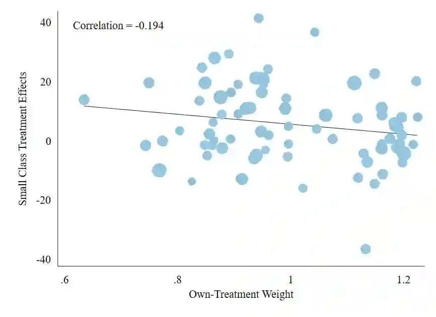 翻译:我们研究多种治疗的回归和足以消除省略的可变偏差的一套控制措施。我们发现,这些回归通常无法估计不同治疗效果的曲线平均值;相反,每种治疗效果的估计受到其他治疗效果的非曲线平均值的污染。我们讨论了三种避免这种污染偏差的估计方法,包括一个新的有效加权平均效应的估测器。我们发现,在对STAR项目进行重新分析时,由于特异性效应的异质性,我们发现了极少的偏差。但是,当影响异性与治疗倾向分数相关时,就会产生相当大的污染偏差。