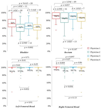 翻译:观察者间差异是手术后环境中临床目标量(CTV)分解的一个严重问题,因为手术后环境没有严重的肿瘤。在这个假设中,CTV不是一个非解剖固定的结构,而是由医生根据使用的临床指导、肿瘤控制和毒性的偏好权衡、他们的经验和培训背景以及其他因素确定的。这导致医生之间在观察者间差异很大。这种差异被认为是一个问题,但是由于每个病人缺乏多个医生CTV的剂量和剂量规划所需的大量时间,因此无法研究其剂量测量方法。在这个假设中,CTV并不是一个由医生根据所使用的临床指导、肿瘤控制和毒性的偏好权衡、他们的经验和培训背景以及其他因素确定的结构。对于一个特定病人来说,我们使用深层次的学习工具来模拟其他医生如何在CTV上居高,以及相应的剂量分配方式,为了模拟多种医生间规划所需的大量时间,我们使用以前开发的CTV的分解方法来研究其剂量的理算方法。我们分析了医生间对器官-风险(OAR)的剂量变化对剂量的影响,我们通过深层次的学习来模拟C- dal Streal Strealalalalalalalalalal 分布可以显示另一个的测算结果。