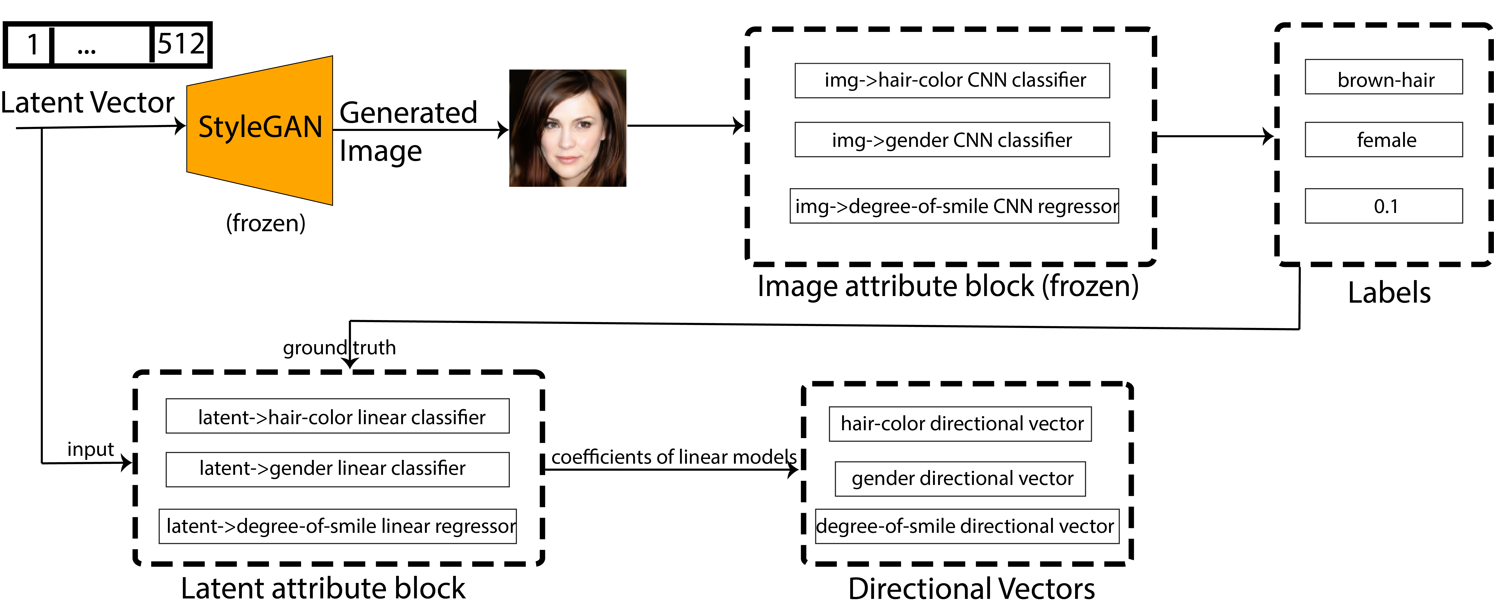 翻译:图像内容是营销运动、网站和横幅的主导因素。今天,营销者和设计者花费大量时间和金钱来制作这种专业质量内容。我们采取一个步骤来简化这一过程,使用创能反对网络(GANs)来简化这一过程。我们提出了一个简单而创新的调整战略,允许使用经过培训的无条件图像生成任务的发电机,根据特定语义属性生成图像。我们的方法是利用潜空相关语义属性的方向矢量来改变潜在矢量。我们的方法旨在与离散(二等和多等)和连续图像属性一起工作。我们用多种公共数据集展示了我们拟议方法(名为Directal GAN)的实用性,平均精度为86.4%,跨越不同的属性。