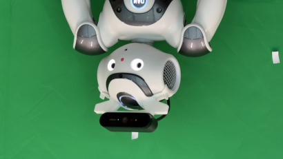 Head movements are crucial for social human-human interaction. They can transmit important cues (e.g., joint attention, speaker detection) that cannot be achieved with verbal interaction alone. This advantage also holds for human-robot interaction. Even though modeling human motions through generative AI models has become an active research area within robotics in recent years, the use of these methods for producing head movements in human-robot interaction remains underexplored. In this work, we employed a generative AI pipeline to produce human-like head movements for a Nao humanoid robot. In addition, we tested the system on a real-time active-speaker tracking task in a group conversation setting. Overall, the results show that the Nao robot successfully imitates human head movements in a natural manner while actively tracking the speakers during the conversation. Code and data from this study are available at https://github.com/dingdingding60/Humanoids2024HRI