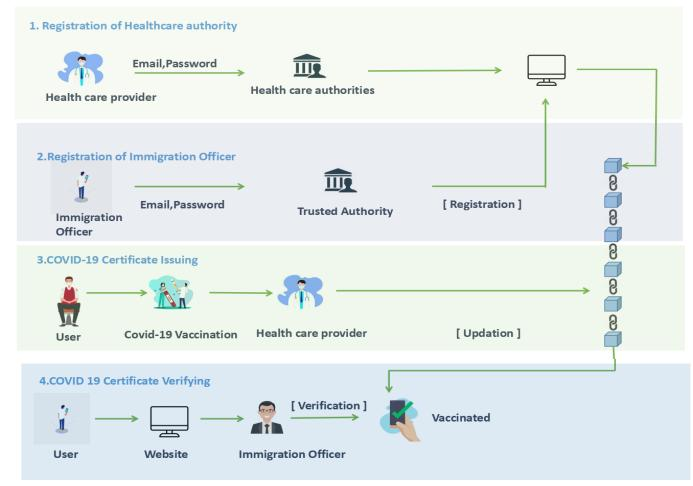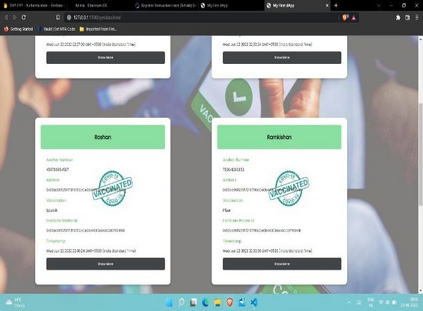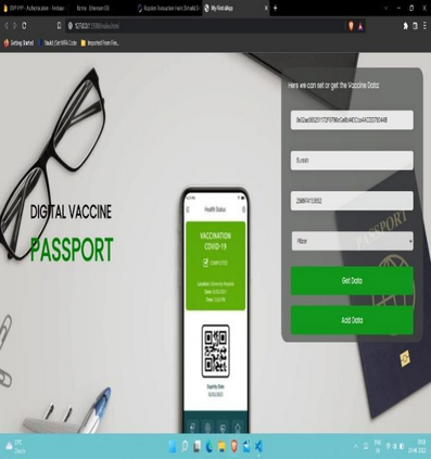 Travel has been challenging recently since different nations have implemented varied immigration and travel policies. For the time being, immigration officials want proof of each person's immunity to the virus. A vaccine passport serves as evidence that a person has tested negative for or is immune to a particular virus. In terms of COVID-19, those who hold a vaccine passport will be permitted entry into other nations as long as they can provide proof that they have COVID-19 antibodies from prior infections or from full COVID-19 immunizations. To reduce time and effort spent managing data, the vaccination passport system has been digitalized. The process of contact tracing may be facilitated by digitization. The "Blockchain technology" system, which is currently in use, has demonstrated its security and privacy in systems for data exchange among bitcoin users. The Digital Vaccination Passport scheme can use Blockchain technology. The end result would be a decentralized, traceable, transparent, reliable, auditable, secure, and trustworthy solution based on the Ethereum block-chain that would allow tracking of vaccines given and the history of diseases.