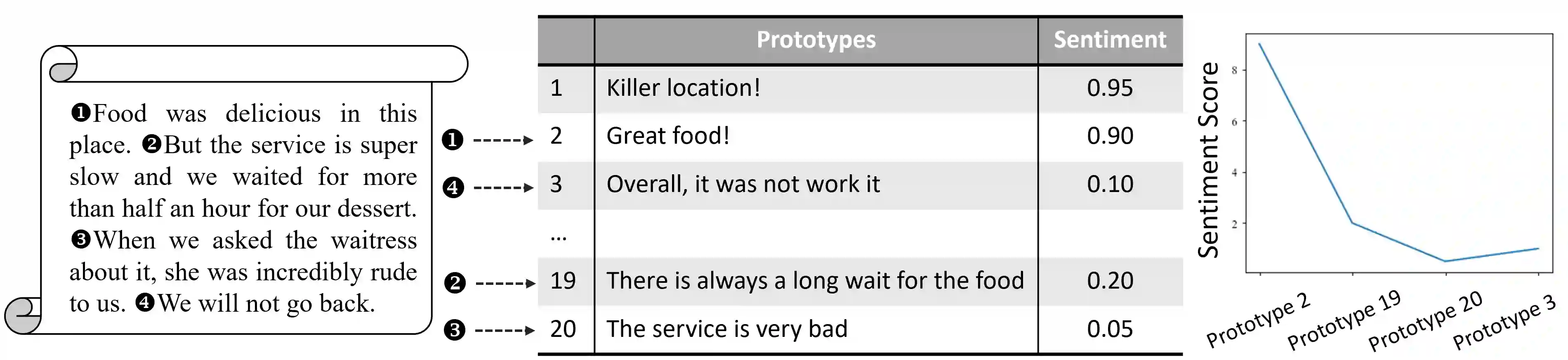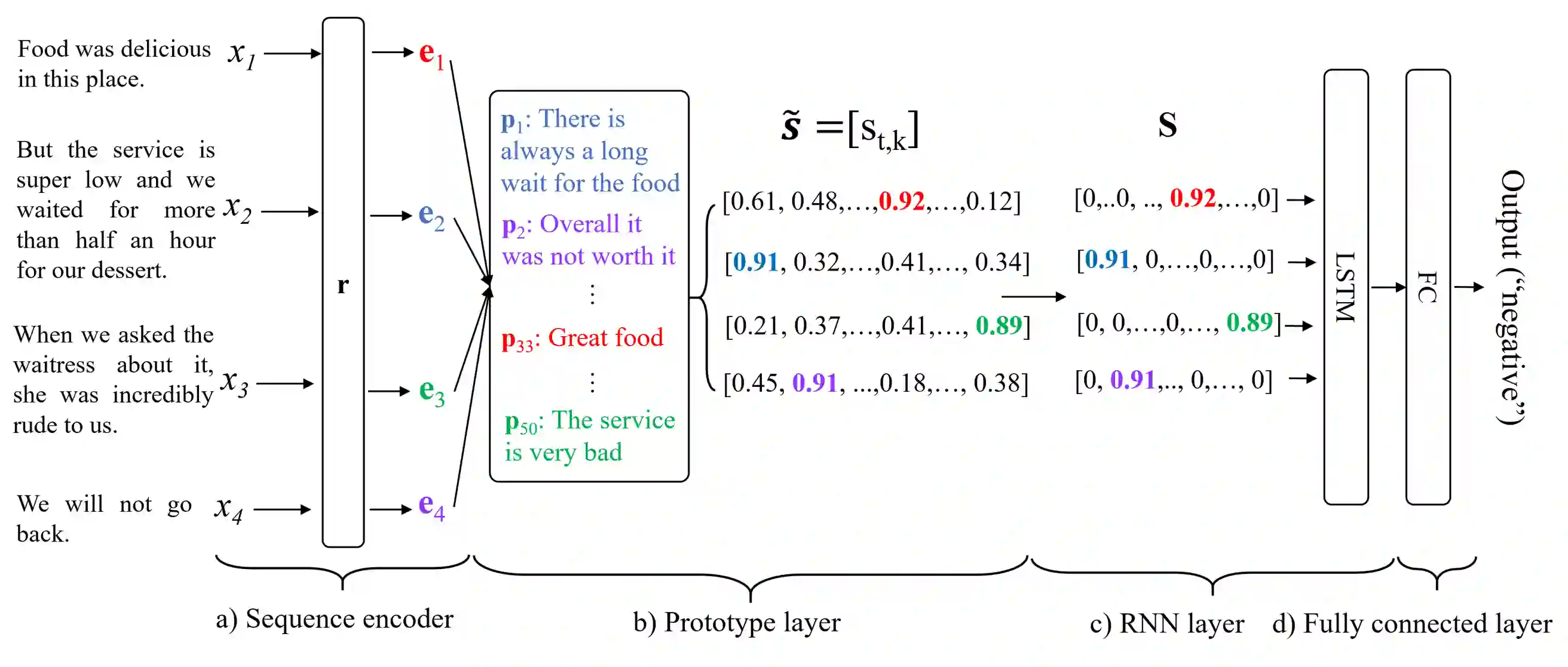 We propose a novel interpretable deep neural network for text classification, called ProtoryNet, based on a new concept of prototype trajectories. Motivated by the prototype theory in modern linguistics, ProtoryNet makes a prediction by finding the most similar prototype for each sentence in a text sequence and feeding an RNN backbone with the proximity of each sentence to the corresponding active prototype. The RNN backbone then captures the temporal pattern of the prototypes, which we refer to as prototype trajectories. Prototype trajectories enable intuitive and fine-grained interpretation of the reasoning process of the RNN model, in resemblance to how humans analyze texts. We also design a prototype pruning procedure to reduce the total number of prototypes used by the model for better interpretability. Experiments on multiple public data sets show that ProtoryNet is more accurate than the baseline prototype-based deep neural net and reduces the performance gap compared to state-of-the-art black-box models. In addition, after prototype pruning, the resulting ProtoryNet models only need less than or around 20 prototypes for all datasets, which significantly benefits interpretability. Furthermore, we report a survey result indicating that human users find ProtoryNet more intuitive and easier to understand than other prototype-based methods.