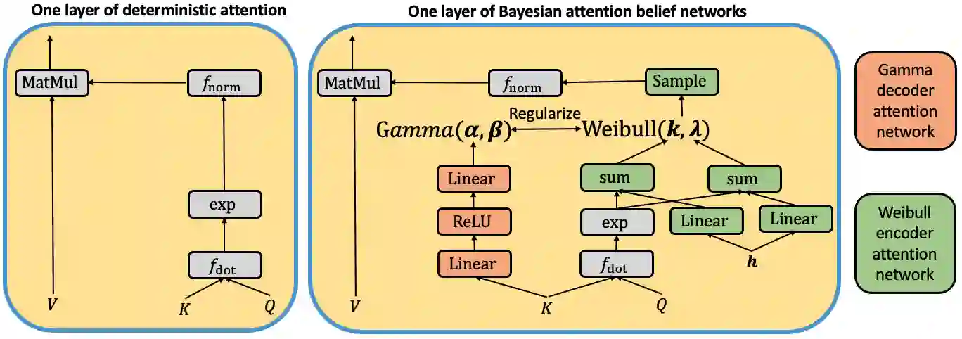 翻译:基于关注的神经网络在一系列广泛的任务中取得了最先进的结果。 多数这类模型使用确定性关注,而由于优化困难或复杂的模型设计,对随机关注的探索较少。 本文介绍贝叶斯注意信仰网络,通过模拟伽马分布等级的不正常化关注权重,构建一个解码网络,通过将确定性关注权重与伽马分布等级挂钩,并通过堆叠Weibul分布,将确定性向上和自上向下的结构堆放到接近后方。 由此形成的自动编码网络可以以不同的方式优化,而变化程度较低。 将任何具有确定性关注的模型,包括预先培训的模型,转换到拟议的巴伊斯注意力信仰网络是简单易事。 关于多种语言理解任务,我们表明,我们的方法超越了确定性关注和状态的诊断性关注力,在准确性、不确定性估计、跨领域的总体化和对对抗性攻击的稳健性方面。 我们进一步展示了我们的方法在神经相关机器和视觉问题分析中的一般适用性, 展示了我们与神经相关和视觉问题有关的各种方法。
