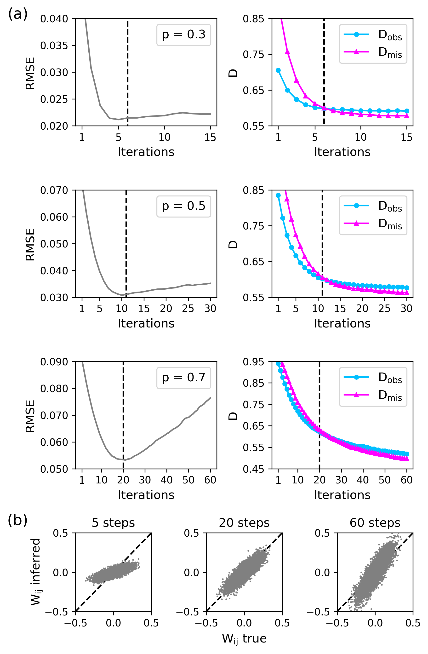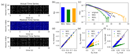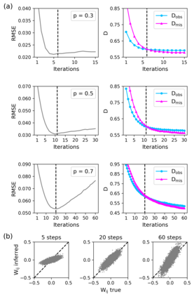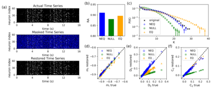 翻译:从时间序列中推断动态是数据分析的一个重要目标。特别是,从数据不完整的数据中推断出随机动态是具有挑战性的。我们建议了一种预期最大化算法,在交替两个步骤之间进行迭代:电子步骤恢复缺失的数据点,而M步骤推断出一个基础网络模型。使用动脉轴模型产生的合成数据,我们确认算法有助于恢复缺失的数据点并推断基本模型。在EM算法的初始迭代中,模型推论显示模型数据点与观察到的数据点比缺失的数据点更加一致。然而,随着我们不断进行迭代,缺失的数据点显示出更好的模型数据点的一致性。我们发现,要求所观察到和缺失的数据点的同等一致性为迭代提供了一个有效的停止标准,以防止过度解析最准确的模型推论。我们用这种停止标准的算法,从真实神经活动的时间序列数据中推断出缺失的数据点和基础网络更加一致。我们的方法恢复了神经系统活动的集体特性,如以往从未与发射时序数据一样,因此与时间相适应。