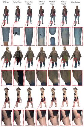 翻译:从 3D 部分纹理扫描 重建 3D 人体形状 从 3D 部分纹理扫描 重建 3D 人体形状仍然是许多计算机视觉和图形应用 -- -- 例如身体动画和虚拟敷料 -- -- 的一项基本任务。我们提议为 3D 身体形状和高分辨率纹理完成 -- -- BCom-Net -- -- 建立一个新的神经网络架构,可以将全部几何从中层重建到高级部分输入扫描。我们将总体重建任务分两个阶段——首先,一个联合隐含学习网络(SCom-Net 和 TCom-Net), 将自动扫描和占用网网作为重建完整体形状和预测垂直纹理的输入。第二,一个高分辨率纹理完成网络,利用预测的神经垂直纹理纹理纹理将部分“ Textlas” 缺失的部分部分重新粉饰。我们对 3DbodyTex.V2 数据集进行彻底的实验性评估,显示我们的方法在状态上取得了竞争性的结果,同时向不同类型和部分形状的层次进行一般化。拟议的方法将SHAPR 1 II 1 AR 1 也将SHAR 1 23 1 的第二个轨道上列了SAR 1 。